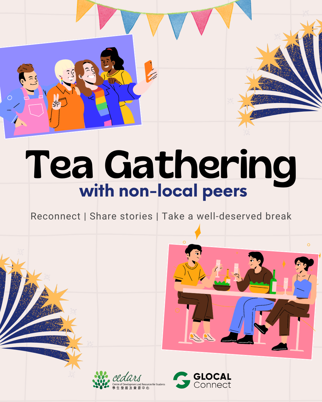 Calling all Glocal Connectors and non-local students — here’s a relaxed afternoon to unwind, connect, and share stories as the semester draws to a close. Come for the good company, stay for the conversations over refreshments.